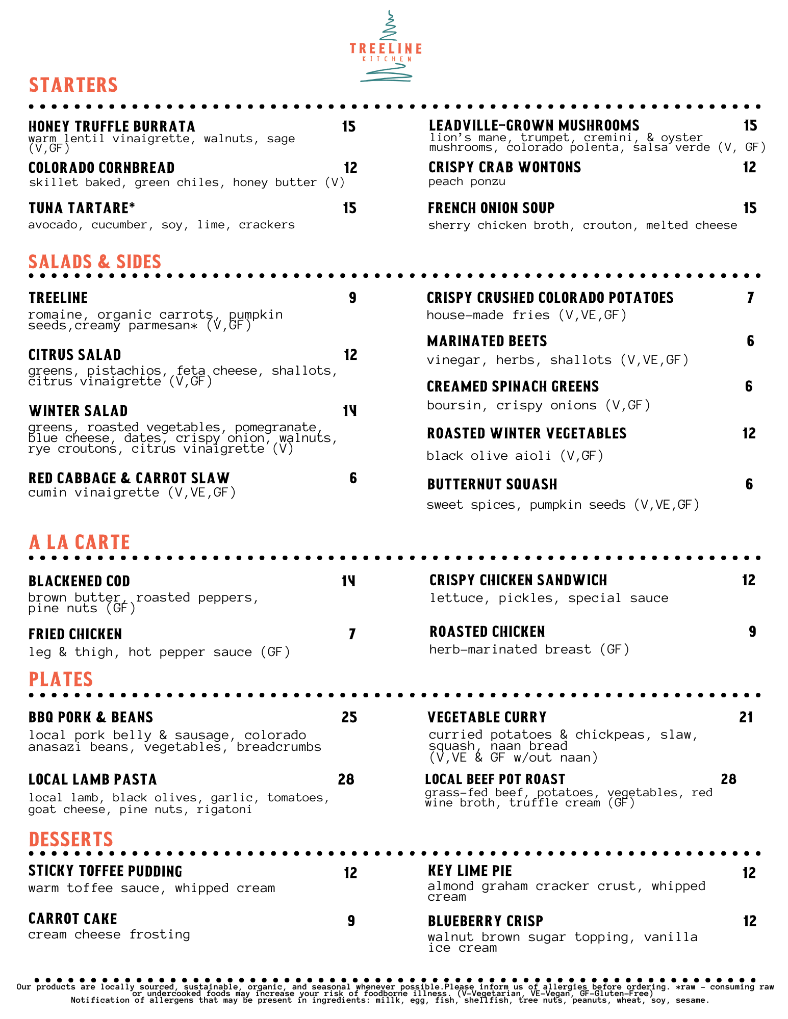 Our Menus